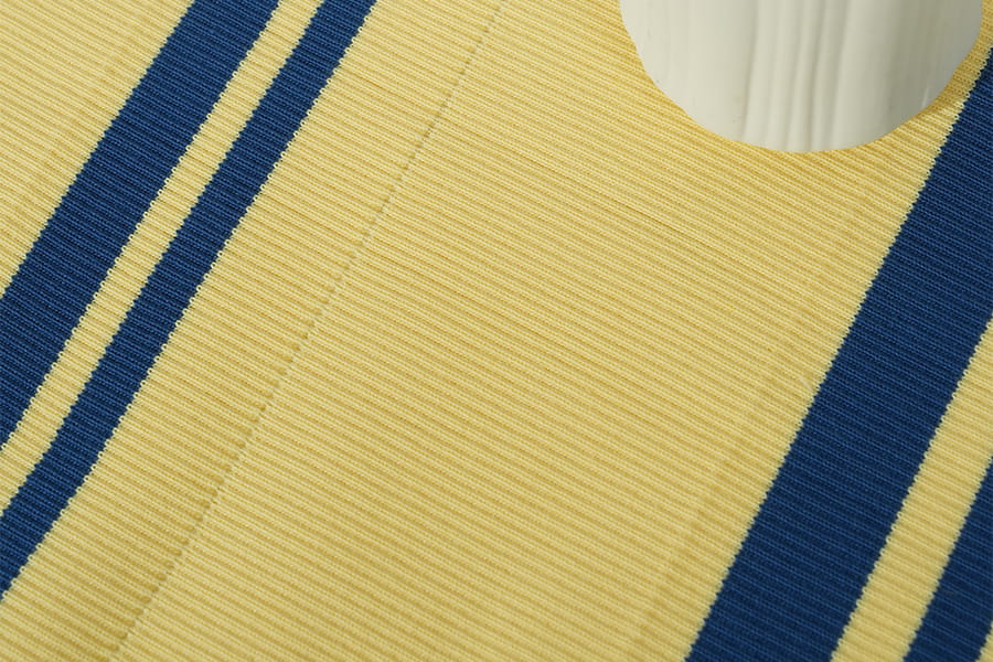 2. Tricot cu coaste din poliester : O minune modernă Spre deosebire de alura atemporală a țesăturii din nervură de bumbac, tricotul din nervură din poliester reprezintă o minune contemporană a ingineriei textile, caracterizată prin rezistență, performanță și versatilitate. Compusă din fibre sintetice de poliester, această țesătură tricotată are o textură striată distinctă care amintește de omologul său din bumbac, deși cu rezistență și durabilitate sporite. Tricotul cu nervuri din poliester simbolizează uniunea dintre stil și funcționalitate, răspunzând cerințelor stilurilor de viață moderne cu o eficiență de neegalat.